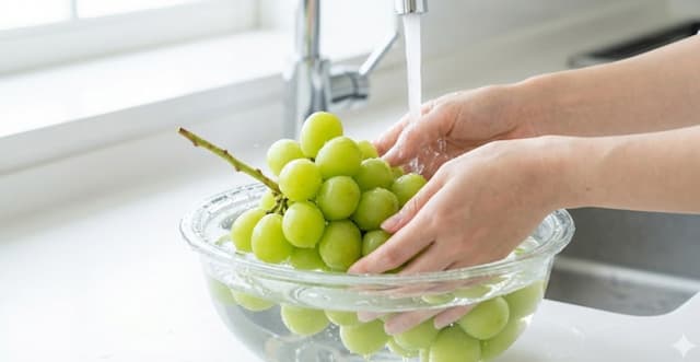国産のシャインマスカットであれば、残留農薬のリスクは極めて低く、過剰に怖がる必要はありません。しかし、流通の過程でつくホコリや見えない汚れを落とすという意味で、軽く水洗いをするのが衛生的なマナーと言えます。