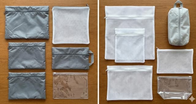 驚くべきことに、合計770円で6点セットが完成してしまいます。このセットの最大の魅力は、「旅行から帰ってきた瞬間、カバンの中身を洗濯機に放り込んで終了」という快感です。洗濯ネットはメッシュ素材なので通気性が良く、使用済みの服を入れておいても蒸れにくいというメリットもあります。