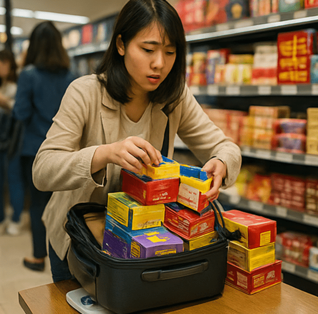 特に注意したいのが、「カウンターでは測られなかったから大丈夫だろう」と油断して、保安検査場を通過した後に免税店でお土産や飲み物を買い足すケースです。搭乗ゲートの直前で抜き打ち、あるいは全数計量が行われることがあり、ここでオーバーするとその場でお金を払って預けるか、荷物を捨てるかの二択を迫られます。