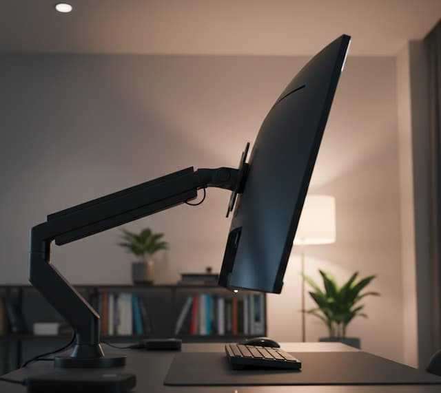 例えば、同じ10kgのモニターでも、薄型の平面モニターと、大きく湾曲して厚みのあるモニターでは、アームが受ける負荷の実質値は後者の方が圧倒的に大きくなります。これが、「重さは範囲内なのに下がってくる」正体の一つです。