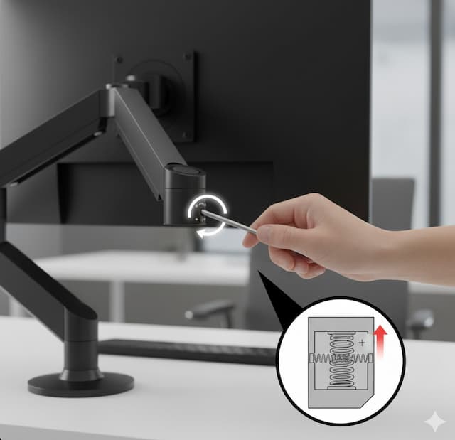 | 重いモニターを支える(下がるのを防ぐ) | 反時計回り (Counter-Clockwise) | バネの張力を強め、持ち上げる力を増やす |