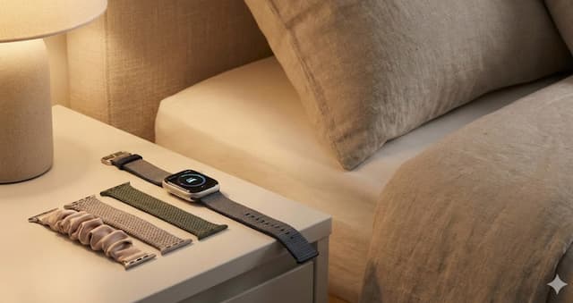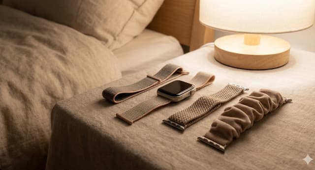 私自身の実践している方法は、**「バンドの着替え(Day/Night Protocol)」**です。日中はキリッとしたレザーバンドや金属バンド、あるいは防水のシリコンバンドを楽しみ、お風呂に入るタイミングで「おやすみ用」のナイロンスポーツループに付け替えます。パジャマに着替えるように、Apple Watchのバンドも着替える。この習慣を取り入れてから、手首のトラブルは一切なくなり、睡眠ログも毎日きれいに取れるようになりました。