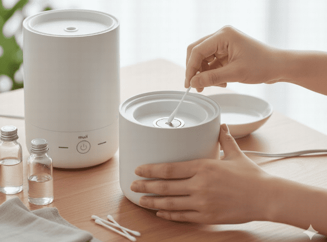 特に粘度が高いオイル(サンダルウッドとか)を使っていたり、長期間使わずに放置したりすると、オイルが固着しやすいようです。ミストが出ない、または止まるように見える場合、この「詰まり」を疑ってみる必要があります。