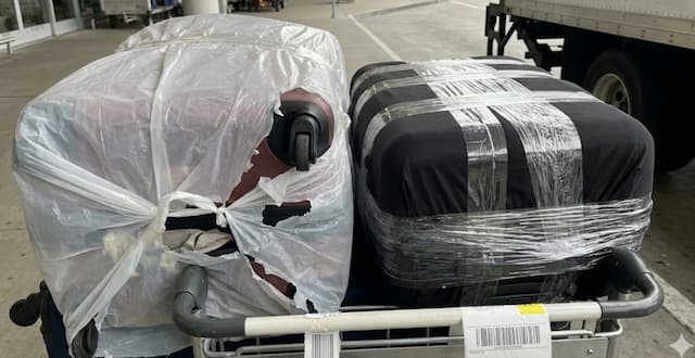 特にスーツケースの場合、中から「キャスター(車輪)」や「ハンドル」といった硬いパーツが袋を突き上げます。外からはコンベアの摩擦、中からはキャスターの突き上げという、いわば「挟み撃ち」の状態になるため、ゴミ袋はひとたまりもありません。