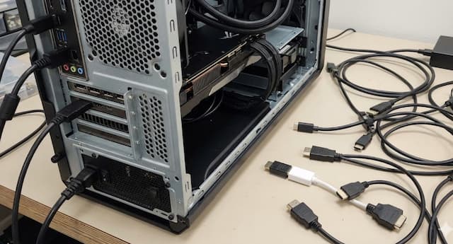 グラフィックボードが生成したリッチな3D映像や高解像度デスクトップ画面を、一度PCの外に出し、それをまた別のカード経由でPC内に取り込み、USB-Cに乗せて再出力する。非常にアナログで泥臭い方法に見えますが、マザーボードの設計段階で配線が統合されていない以上、これしか方法がないのです。